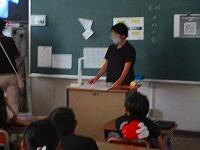 教師も体験し、的が見事に倒れると大きな歓声があがっていましたよ