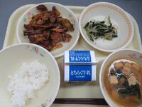 ごはん 牛乳 豚肉とさつまいものかりん揚げ からし和え 厚揚げの味噌汁
