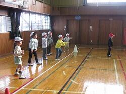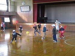 1年生が、体育館で「お楽しみ会:ドッジボール」をしていました。