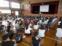 続いて、学校長より、夏休み中の2つの約束がよく守れていたことや、2学期は、「聞く・聴く・訊く」ことを意識して「学習(学び習う)」していくという目標について話がありました