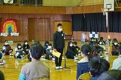 1~5年生へのメッセージと、5年生への「最上級生のバトン」が6年生から贈られました。