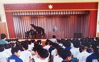 体育館が完成した2年後、昭和58年に体育館にグランドピアノが設置されました。下の3枚の写真からわかるように6月に盛大な披露式が行われました。