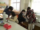 「見て見て~!!こんなに速く縫えるようになったんです!」「すごいね~。僕はまだ心配だから、ゆっくり縫うよ。」「布が厚くなっているところは、スピードをゆっくりにするといいよ。」「ここを見て縫うと、曲がらないで縫えるんだって。さっき教えてもらったよ。」・・・など、子どもたち同士で励まし合ったりアドバイスし合ったりして、学習を深めています。