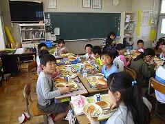 続く給食の時間にも、班ごとに各教室に分かれて「なかよし給食」を楽しみました。