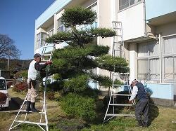 シルバー人材の2名の方に、松の枝の剪定をしていただきました
