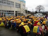 幸い、雨は上がっていたので、傘をささずに集まることができました。1列で歩いて、安全に気を付けて帰りましょう。