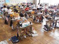 漢字の組み立ての学習で、部分の組み立てのポイントを確認しながら、毛筆の練習をしています。今回は「原」で、がんだれの中の部分を、文字の中心より少し右に寄せるのがポイントです。「文字全体のバランスを考えて書こう」と意識して練習に取り組んでいます。また、練習した半紙の整頓や道具の後片付けもスムーズに行っています。