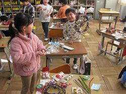 1年生が、生活科の時間に育てたサツマイモのつるを使って、リースを作っていました