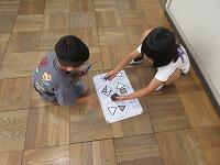 グループごとに、三角形・四角形・そうでないもの・分からないものに分けるのですが、「どうしてその形だと思うのか」の根拠をはっきりさせて話すように指示していました