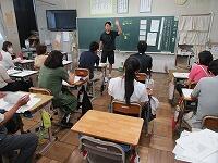 11月に5年生の授業研究会を予定しているため、放課後に教員を児童役にして、模擬授業を行いました。