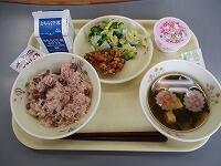 1年生も、入学式の翌日から給食が始まり、今日で3日目…配膳もとっても上手です。今日の”お祝い”づくしの献立に、みんな大喜びです。