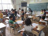 手紙や学習プリント、作品材料等が配られ、各自でピンクの封筒や連絡袋に入れていました。
