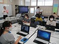 西方小では、定期的に教職員研修を行っています。今日の研修テーマは「はじめての遠隔授業」でした。具体的には「ZOOMで遠隔授業を主催する方法」について、実際にパソコンを操作しながら、多くの教職員が参加して研修を行いました。