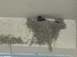 星昇降口軒下のツバメの巣に、雛がすくすくと育っています。