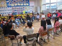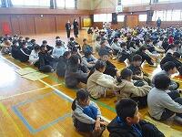 業間に体育館で終業式を行い、今学期を振り返りました