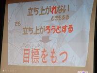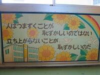 1階東階段に飾られている卒業記念制作から『立ち上がれない』と『立ち上がらない』の違いについての説明と、アニメ「こち亀」の台詞を使って、自分で立ち上がるためには目標を持つことが大切であると話してくださいました