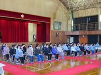 1~3年生は、多目的室で、お別れ式の予行をしました