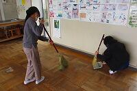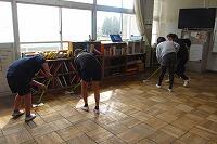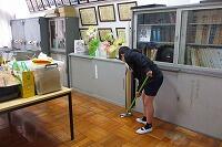 昼休みに担当教室の片付けをし、その後清掃とワックスがけをしました