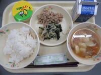 ごはん 牛乳 二色丼の具(鶏そぼろ・おひたし) いなか汁 はちみつレモンゼリー
