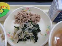 今日は、ごはんに鶏そぼろとおひたしをのせて食べる二色丼の具です