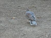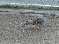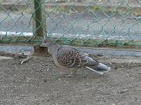 <学校の生き物たち紹介> 朝の校地巡回中、校舎北側のソメイヨシノの根元を歩き回るキジバトに出会いました。