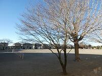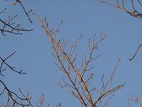 <学校の生き物たち紹介> 校舎前のハナミズキも、すっかり葉を落とし、枝先には、春の訪れに備えて丸みのある新芽をたくさん付けています。