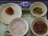 <今日の給食> ご飯(ハヤシライス)・牛乳・ハヤシライス・メンチカツ・きのこサラダ