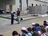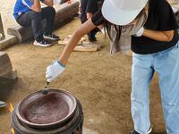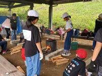 最後の活動となる塩作りを行いました。海水をくみに行く担当とかまどを作る担当にわかれて準備をしました。土鍋に海水を入れて、いよいよ火をつける緊張の一瞬です。うまくついた班もあれば何度も挑戦してつけた班もありましたが、どの班も自分たちで火をつけることができました。後は薪を入れながら火の調整をし、海水のごみやあくを根気強く取り除きました。少しずつ海水も減り、土鍋には白い塩がつくようになってきました。白いシャーベット状になり、更に水分がとんだら、先生に土鍋をはずしてもらい、土鍋がさめた後に塩をけずり落として、自分たちで作り上げた塩の完成です。持ち帰った塩で塩おむすびなどを作ってご賞味ください。