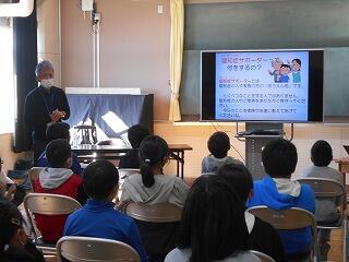 11月17日(金)の1~3校時にかけて、5年生が学級ごとに高齢者擬似体験を行いました。めがねやイヤーディフェンダー、おもりなどをつけました。目の見え方や耳の聞こえ方、体の動かし方などが現在の自分たちと違うことを体験することができました。擬似体験の装置をつけたままペタンクも行いました。この体験を通して、高齢者の方々のご苦労を知り、どのように接していくのが良いか考えることができました。大平地区社会福祉協議会の皆様、ありがとうございました。