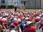 全校児童がプールの方向を向いて整列し、運動委員会児童の進行で始まりました。