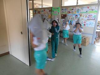 5月24日(金)の9時30分から、今年度初めての避難訓練を実施しました。いざというときに備え、全児童が真剣に取り組み、5分27秒で全員が避難できました。訓練を通して、地震発生時の身の守り方や避難する際の「お・か・し・も・ち」の約束、避難経路と避難場所の確認がしっかりできました。
