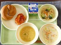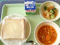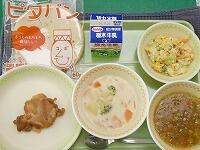 <今日の給食> グラタントースト・牛乳・もやしのカレーソテー・海の野菜と卵のスープ