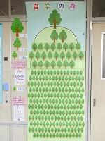 自主学習の取り組みを奨励し、取り組みの様子を見える化するために掲示し始めた「自学の森」に、1冊終了の木が200本を超えました!