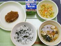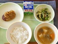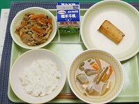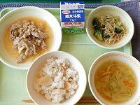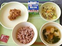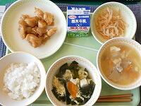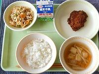 <今日の給食> ご飯・牛乳・焼き鳥風煮・昆布漬け・じゃが芋のみそ汁