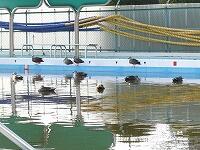 また、プールでは、今までで一番多い12羽のカルガモが羽を休めていました。(右側にも2羽いました。)