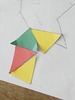 1年生の教室では、同じ形の三角形の色板を使って、形作りの学習に取り組んでいました。