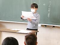 3年生の教室で、一年間の自分を振り返ってまとめた作文の発表が行われていました。