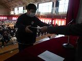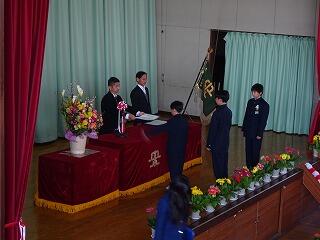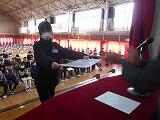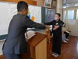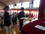 卒業式予行の後の6年生の表彰の様子