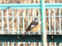 <学校の生き物たち紹介> 約1か月ぶりに、北校庭のフェンス沿いで、ジョウビタキの雄と出会いました。長い尾羽を小刻みに振る姿がかわいらしいです。