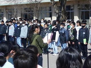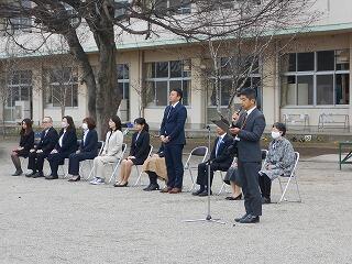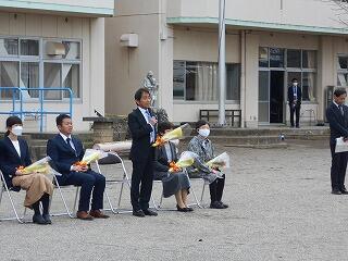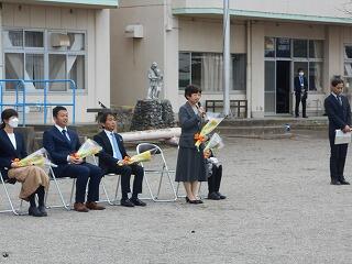 結びになりますが、ご臨席賜りました来賓の皆様、卒業式に際し心温まるメッセージをいただきました皆様、そしてこれまで卒業生にたくさんの愛情をいただきました地域の皆様、関係者の皆様、大変ありがとうございました。