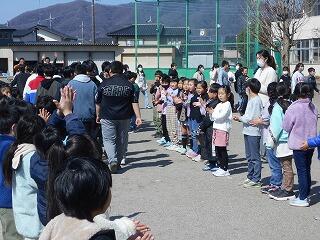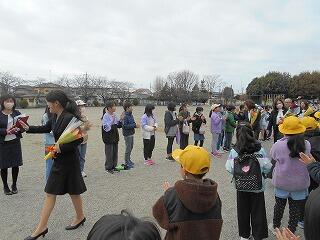 校庭でのお見送り