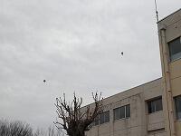 朝、学校の近くの上空を、2機の気球が通り過ぎていきました。