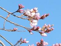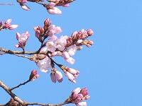 <学校の生き物たち紹介> 北校庭の角で、サトザクラが、小さくて可憐な花を咲かせ始めました。