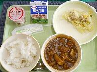 <今日の給食>【生きゅうり献立】ご飯・牛乳・家常豆腐・やみつききゅうり・卵とわかめのスープ