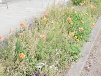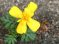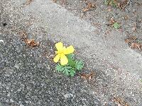 <学校の生き物たち紹介> 玄関前の駐車スペースに、ど根性マリーゴールドが花を咲かせているのを見つけました。