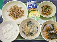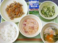 <今日の給食> ご飯・牛乳・鶏肉と玉ねぎの甘辛煮・キムチ和え・むらくも汁