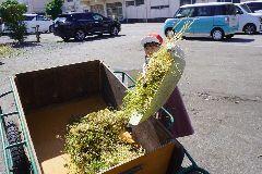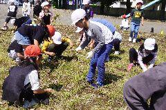 午前中、2年生がサツマイモの苗を植える畑の準備を、ボランティア3名と地域コーディネーターのご協力をいただいて行いました。