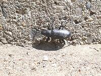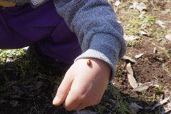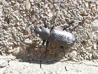<学校の生き物たち紹介> 校舎北側の花壇の縁で、昨年も出会っていたユミアシゴミムシダマシに出会いました。