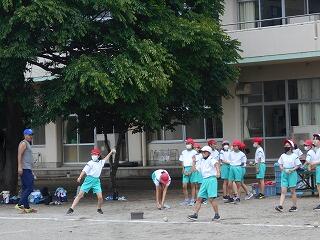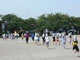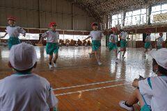 大平中央小では、低学年のシャトルランを高学年がお手伝いしてくれます。