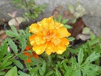 <学校の生き物たち紹介> 1年教室前の花壇に、昨年こぼれた種から発芽したマリーゴールドが花を咲かせています。
